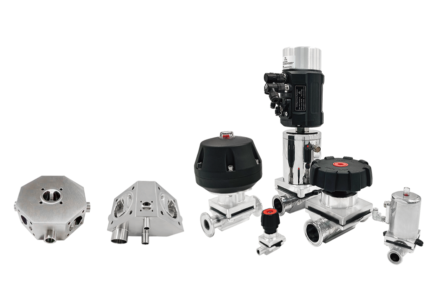 ডায়াফ্রাম ভালভ হল একটি বিশেষ ধরনের শাট-অফ ভালভ, যা একটি নমনীয় ডায়াফ্রামকে একটি বন্ধ উপাদান হিসাবে ভালভের দেহের অভ্যন্তরীণ গহ্বর এবং তরলকে বিচ্ছিন্ন করার জন্য ব্যবহার করে। ডায়াফ্রাম ভালভগুলি ফার্মাসিউটিক্যাল, খাদ্য, জৈবপ্রযুক্তি, রাসায়নিক এবং অন্যান্য শিল্পে তাদের সরল গঠন, চমৎকার সিলিং কর্মক্ষমতা এবং মাধ্যমের উচ্চ অভিযোজনযোগ্যতার সাথে ব্যাপকভাবে ব্যবহৃত হয়। দূষণ এড়াতে ভালভ স্টেম, ভালভ কভার এবং অন্যান্য উপাদান থেকে তরল সম্পূর্ণরূপে বিচ্ছিন্ন। অভ্যন্তরীণ গহ্বরটি মসৃণ এবং কোনও মৃত কোণ নেই, যা উচ্চ পরিচ্ছন্নতার প্রয়োজনীয়তা সহ শিল্পগুলির জন্য উপযুক্ত। একটি ভাল বন্ধ প্রভাব অর্জন করতে ডায়াফ্রাম সরাসরি ভালভ আসনের সাথে যোগাযোগ করে। এটি কার্যকরভাবে বাহ্যিক ফুটো এবং অভ্যন্তরীণ দূষণ প্রতিরোধ করে। সুইচ ম্যানুয়াল, বায়ুসংক্রান্ত বা বৈদ্যুতিক অ্যাকুয়েটর দ্বারা নিয়ন্ত্রিত হয়, যা বজায় রাখা সহজ। ভালভ শরীরের উপাদান S31603 নকল হয়. ডায়াফ্রাম উপাদান (যেমন TFM EPDM) বিশেষ খাদ উপাদান (যেমন টাইটানিয়াম, Hastelloy, 904L, ইত্যাদি) থেকে নির্বাচন করা যেতে পারে, যা বিভিন্ন ক্ষয়কারী মিডিয়ার জন্য উপযুক্ত। ফ্লো চ্যানেলটিকে স্ট্রেইট-থ্রু বা মাল্টি-পাস টাইপ হিসাবে ডিজাইন করা হয়েছে যাতে তরল প্রতিরোধ ক্ষমতা কমানো যায় এবং উপাদানের অবশিষ্টাংশ কমানো যায়।